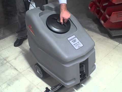 Easy access for cleaning through 8" lid opening. Corrosion proof polyethylene tank. The flexible, swing-away arm allows easy access to areas as narrow as 26" to accommodate obstacles and narrow aisles. Manually powered with NO batteries, NO motor and few moving parts.